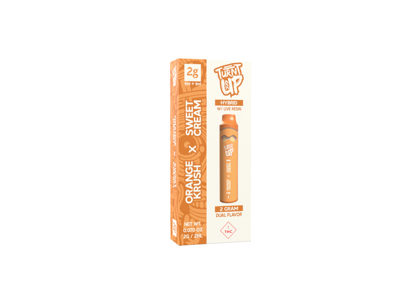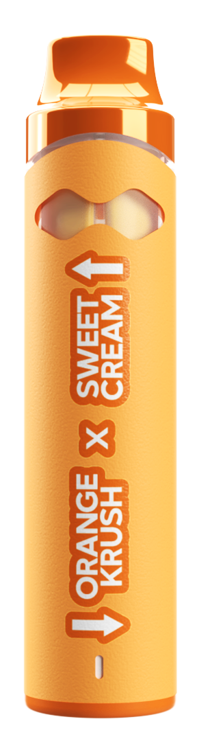 Try one flavor. Try the other. Or turn it up and mix them both. Our Turnt Up 2g Dual Flavor Disposable with Liquid Diamonds and Live Resin is designed for those who want variety and potency in one device. Featuring Orange Krush and Sweet Cream, this disposable lets you switch between two distinct strains or combine them for a unique experience using a built-in switch mechanism.